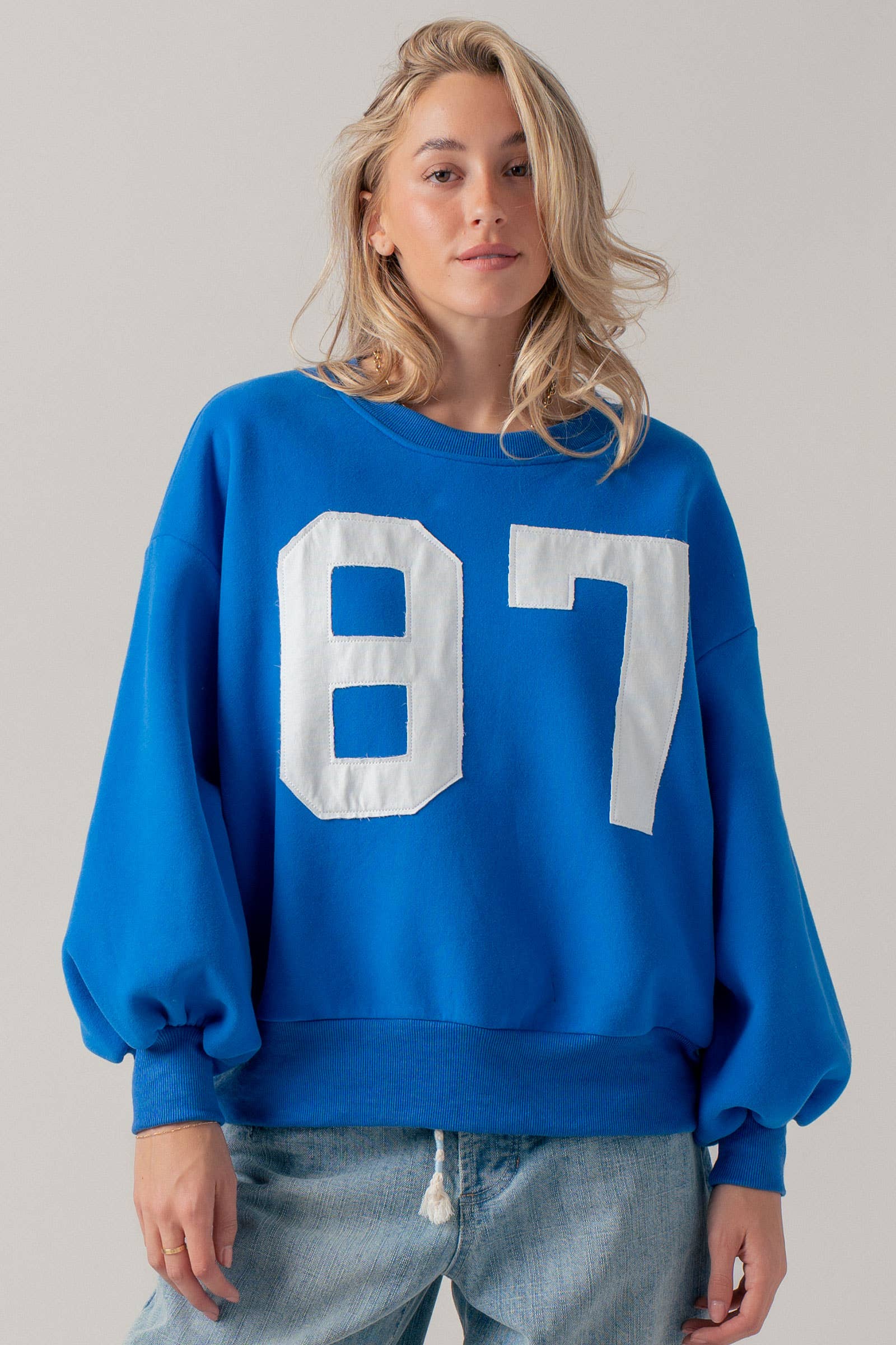 "87" Graphic Balloon Sleeve Oversized Sweatshirt
