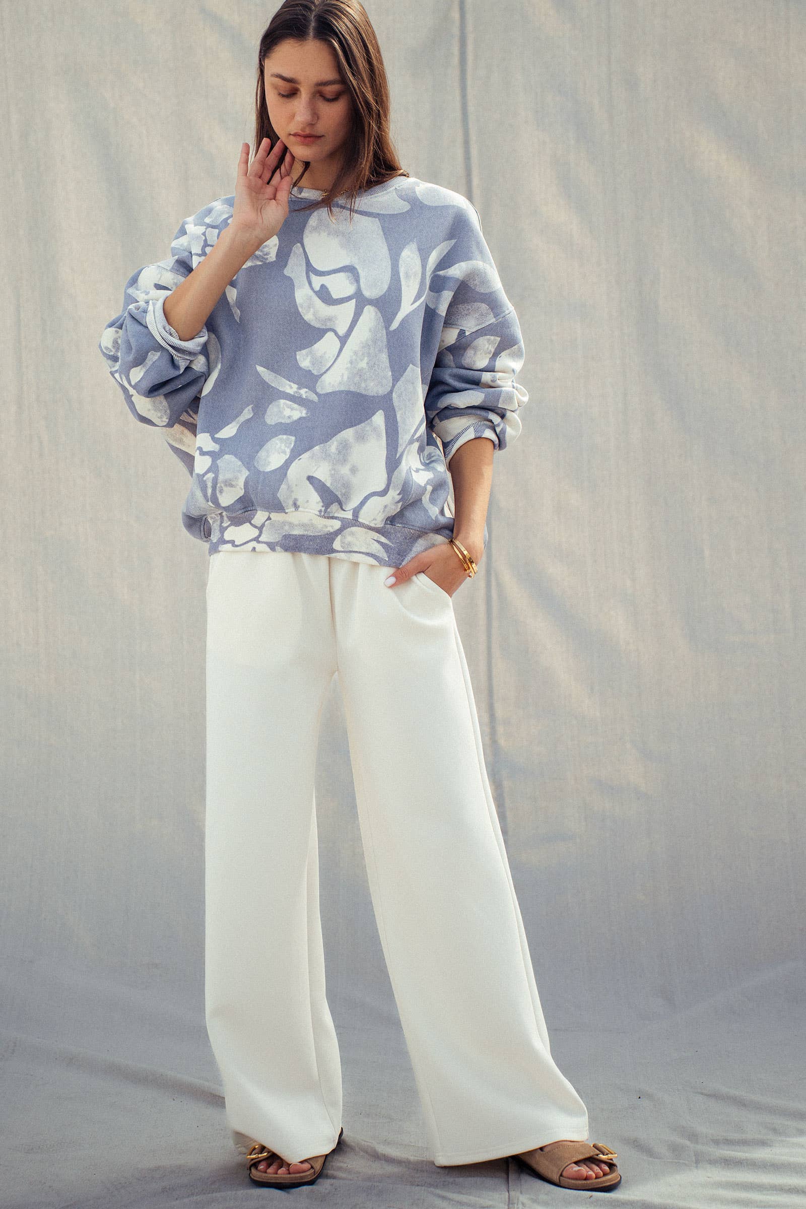 Make a bold statement with this abstract print sweatshirt, crafted for comfort and standout style. With its oversized fit and eye-catching design, it's the perfect modern layer for laid-back looks or statement outfits.