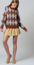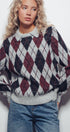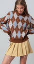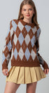 Heritage-inspired argyle sweater in warm brown and soft blue, finished with a polo collar for a preppy touch. Crafted from a plush knit with drop shoulders, ribbed trim, and a relaxed silhouette for effortless comfort.