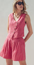 Asymmetrical Button Cotton Vest & Shorts Set