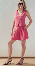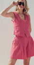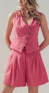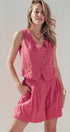 Fit: Tailored vest silhouette paired with relaxed, high-waist shorts.