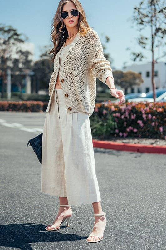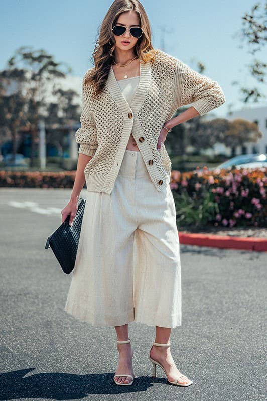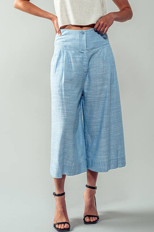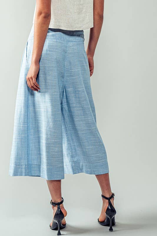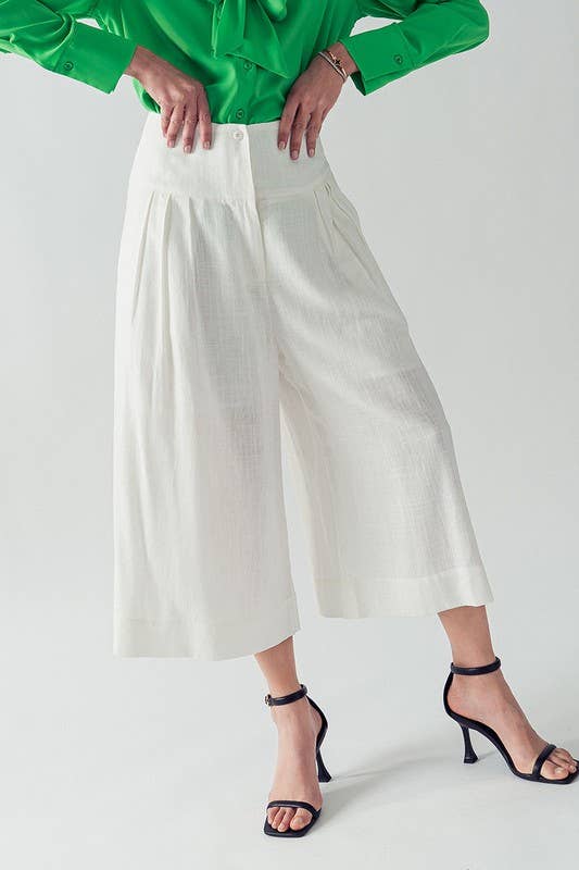 Embrace effortless style with these breezy ankle-length pants featuring an ultra-wide leg silhouette and comfortable pull-on design. The premium viscose-linen blend ensures a luxurious drape while maintaining breathability. Perfect for creating a sophisticated yet relaxed look.