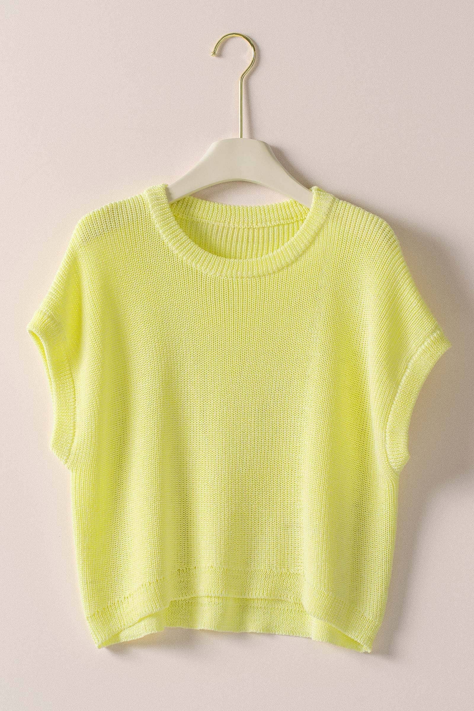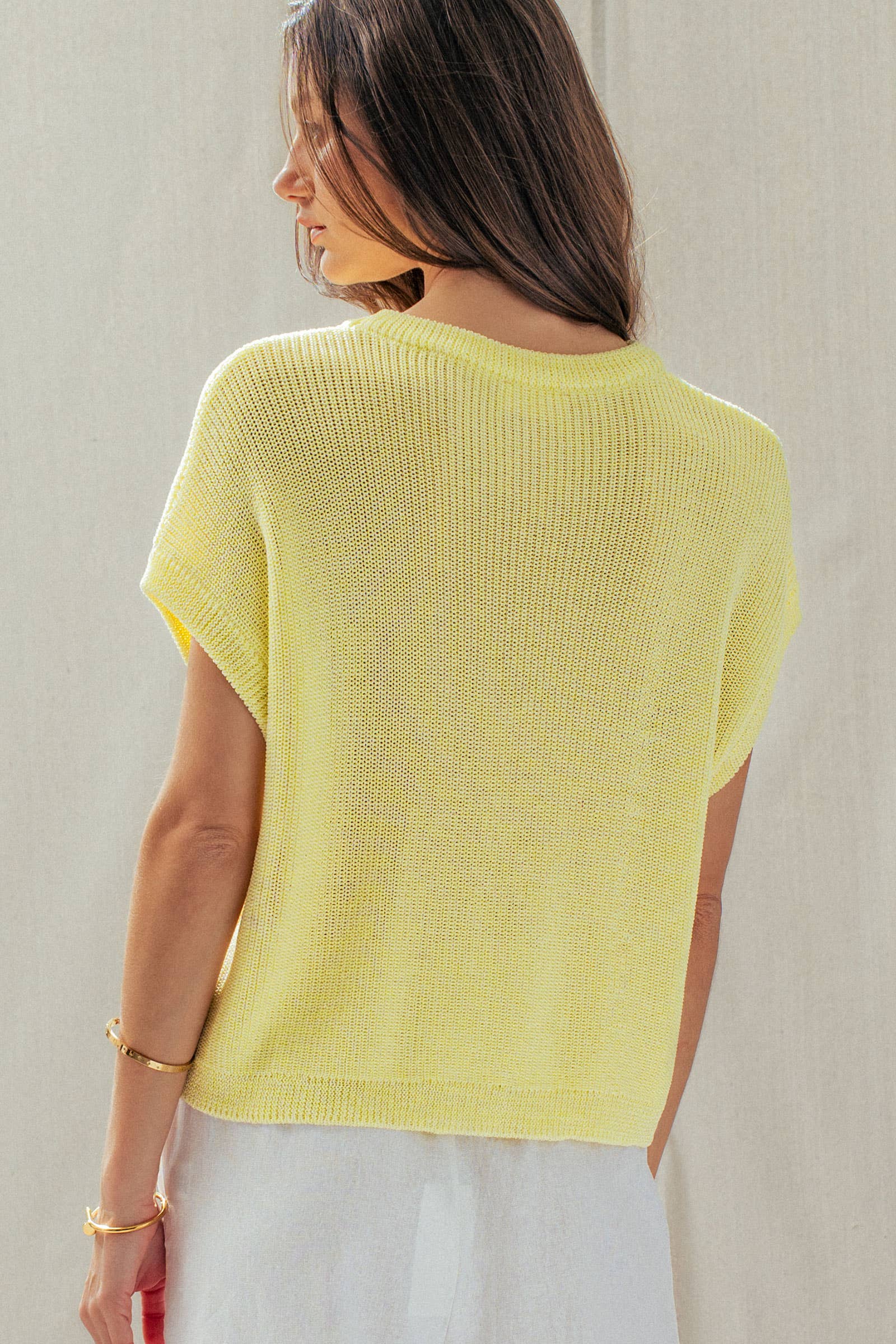 Inject a pop of sunshine into your store with this vibrant knit top. Designed with a modern boxy silhouette and relaxed cap sleeves, this lightweight pullover is crafted from a premium viscose blend that feels cool and silky against the skin—the perfect "elevated basic" for pairing with crisp white linen or denim.
