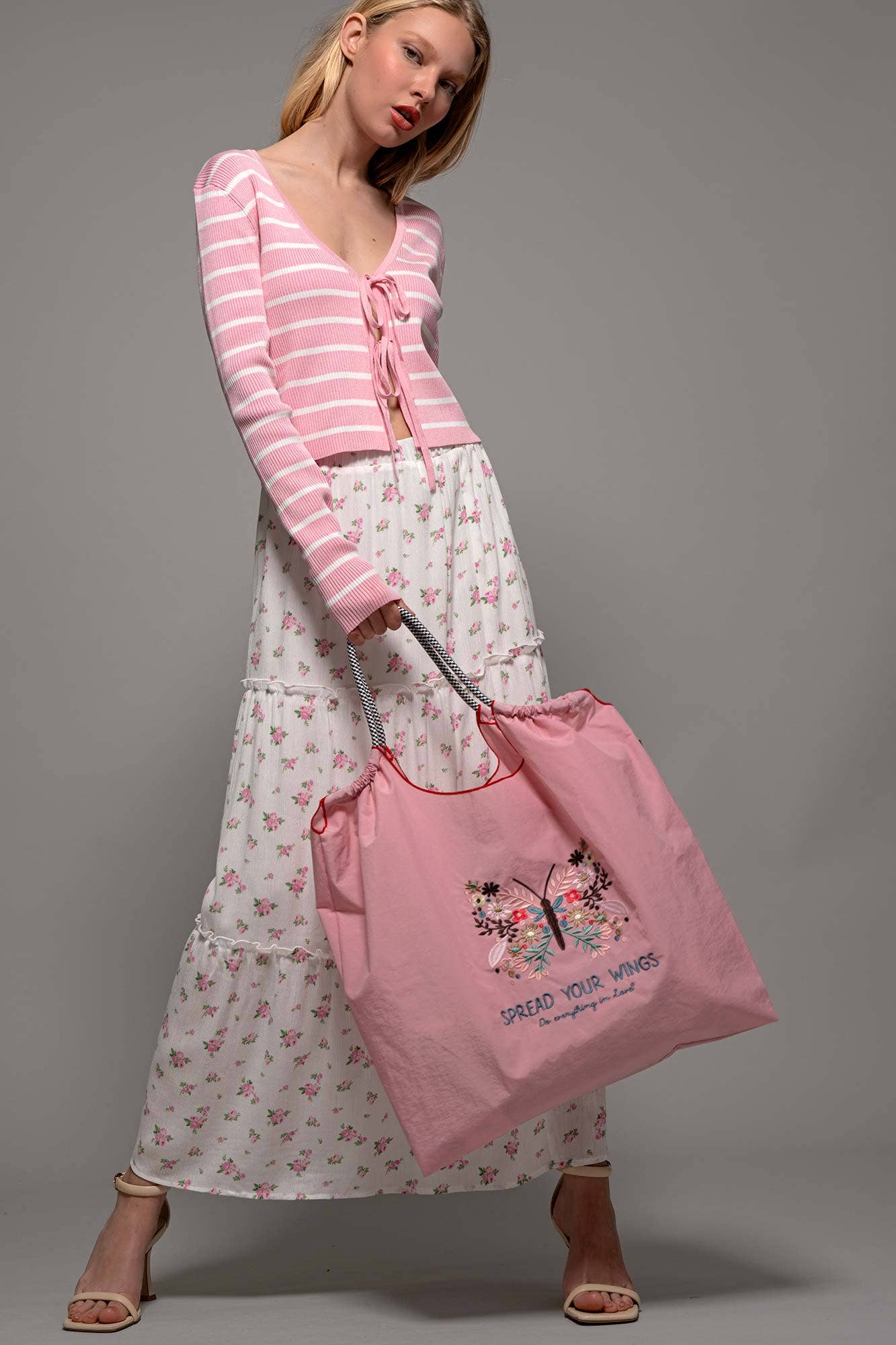 Make a statement with this inspiring oversized tote bag featuring delicate butterfly and floral embroidery. Perfect for customers from all walks of life, this versatile bag combines whimsical charm with practical functionality.