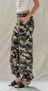 Camo Print Utility Cargo Pants with Drawstring Hem