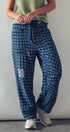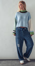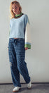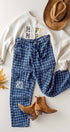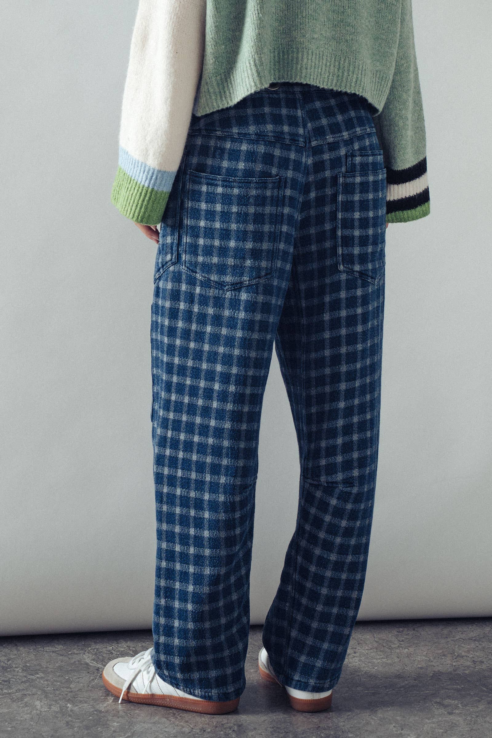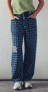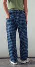 A playful twist on classic denim, these vintage-wash pants feature an allover blue checkered pattern with a utilitarian rope-tie waistband and oversized patch pockets. Finished with a subtle contrast patch for a heritage workwear vibe, they offer a relaxed straight-leg fit that pairs effortlessly with tees, knits, or tailored layers.