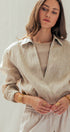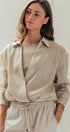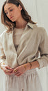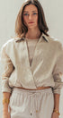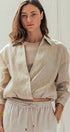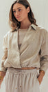Collared Linen Wrap Crop Top with Built In Tank