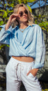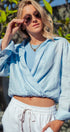 Collared Linen Wrap Crop Top