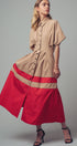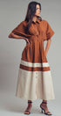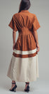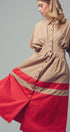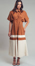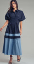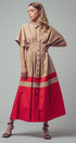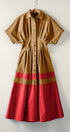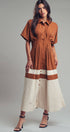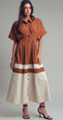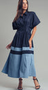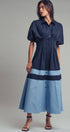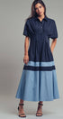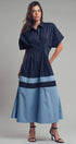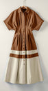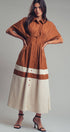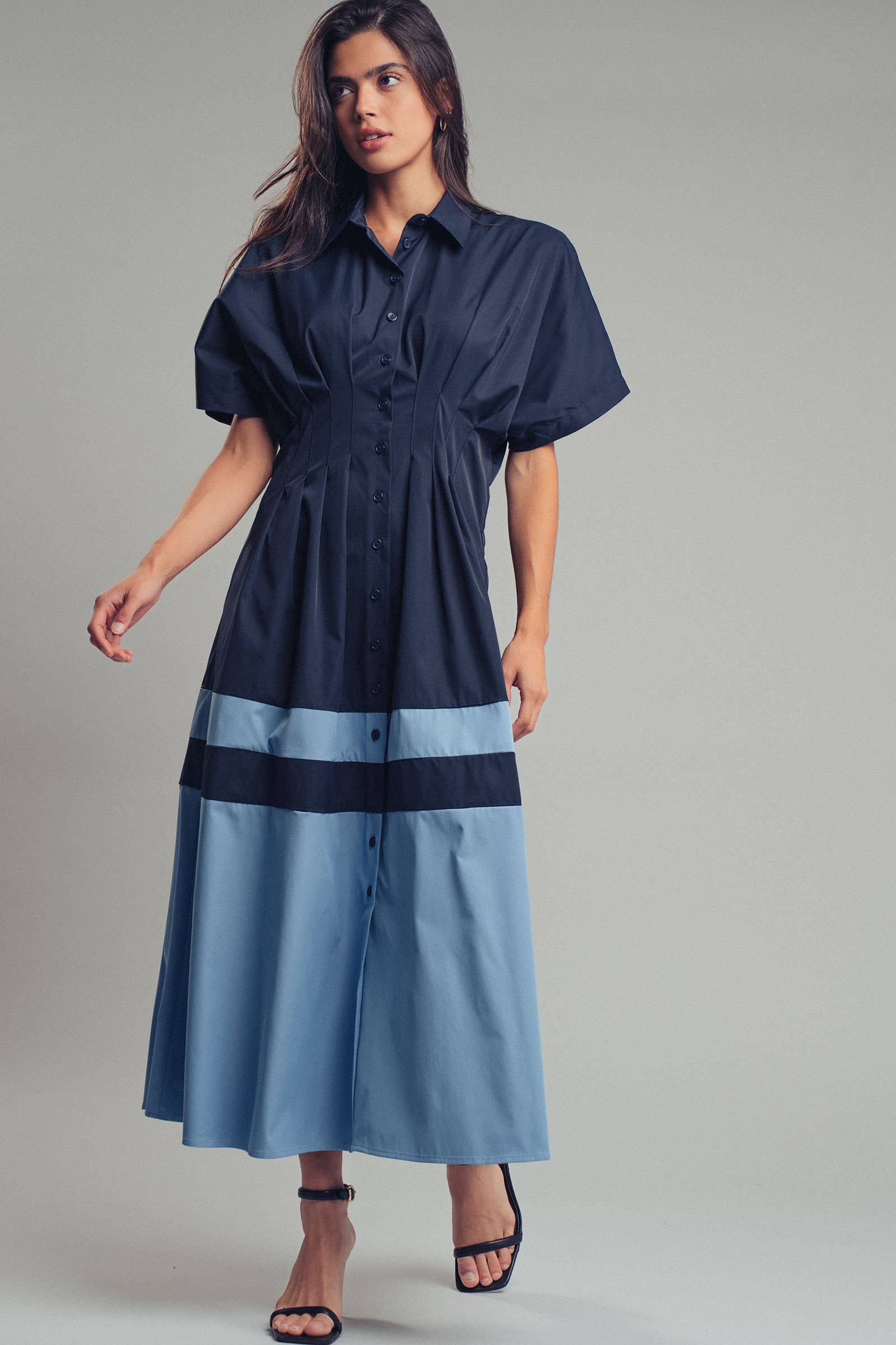 Make a bold statement with this midi dress featuring eye-catching colorblock panels and a breathable cotton-blend construction. Its polished collar and button-front closure add effortless structure to its relaxed silhouette.