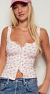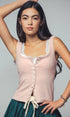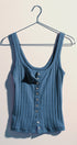 Design: A ribbed knit tank in a rich orange color with a full button-front closure.