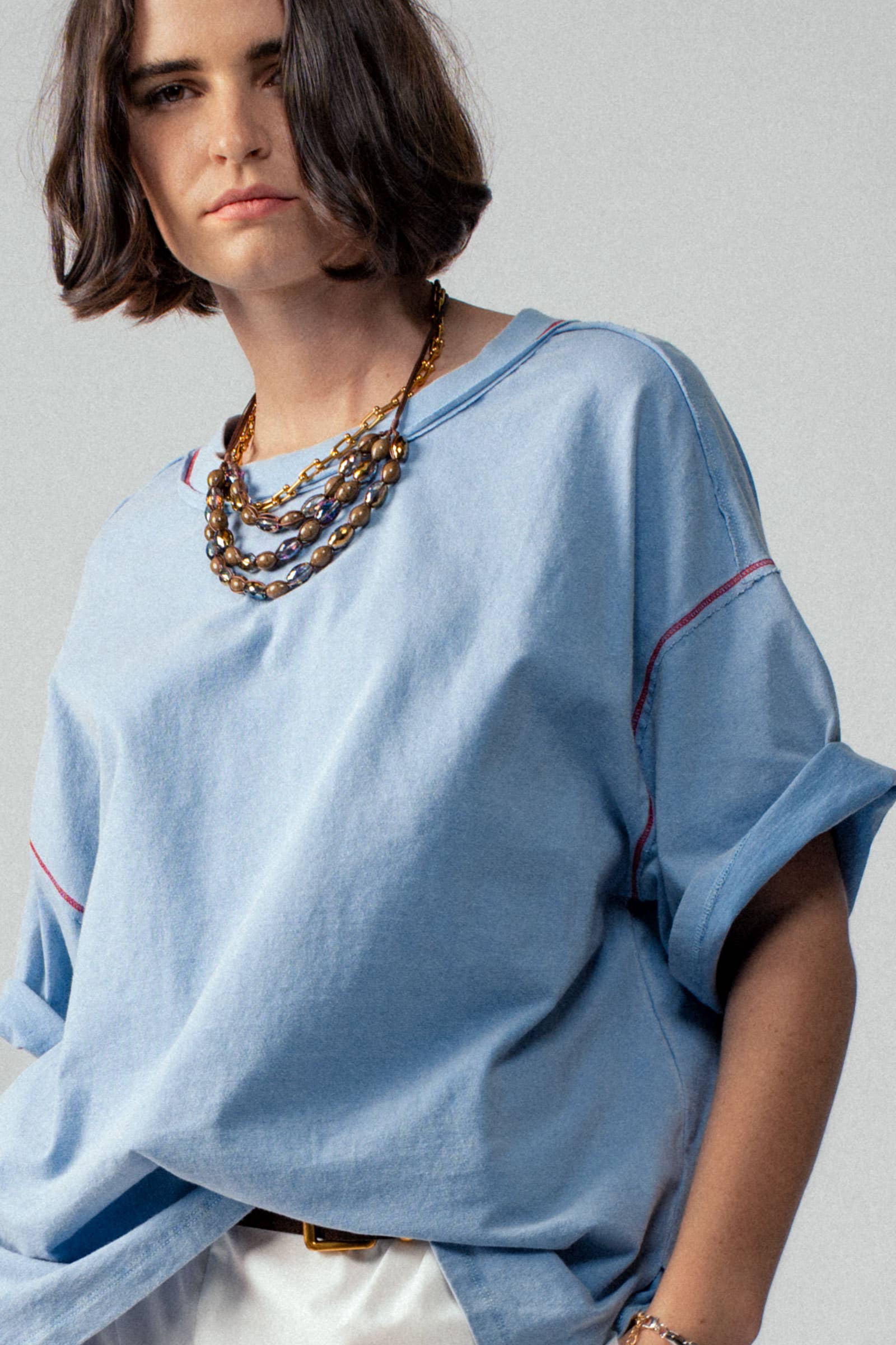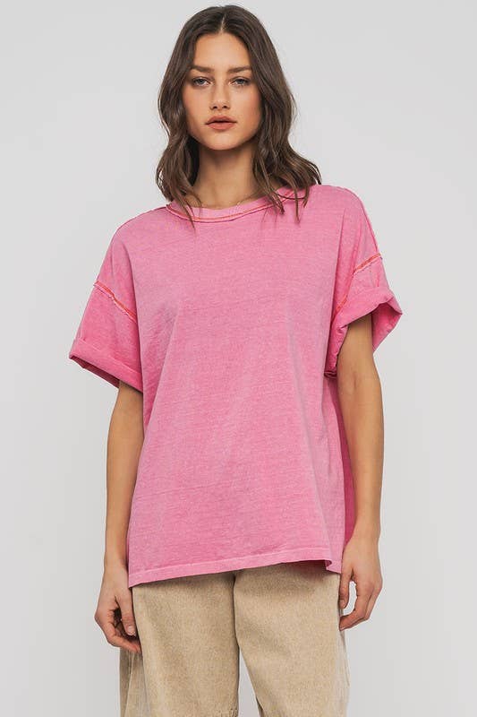 Contrast Stitch Mineral Wash Spring Oversized Tee