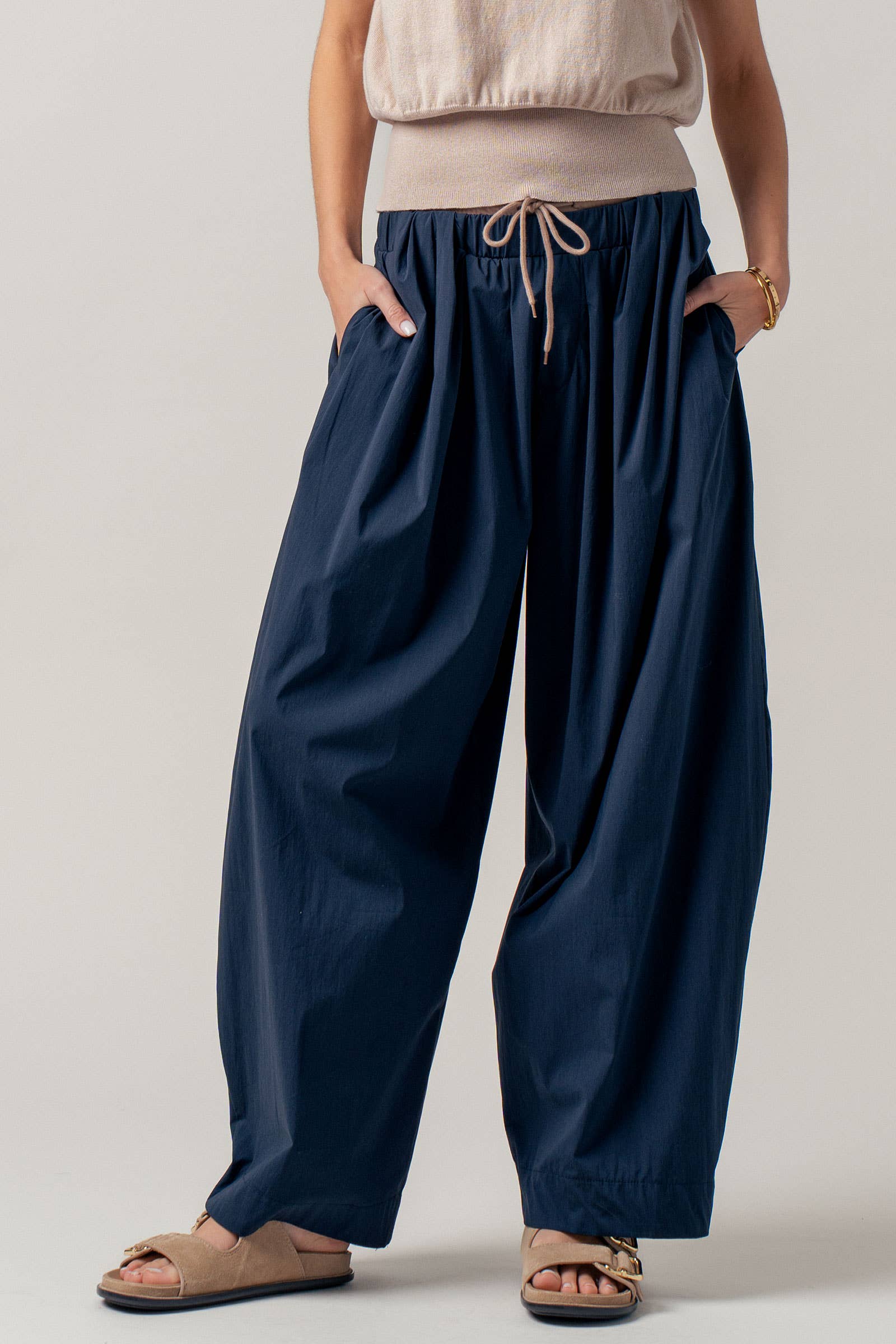 Contrast Waist Cocoon Leg Pants