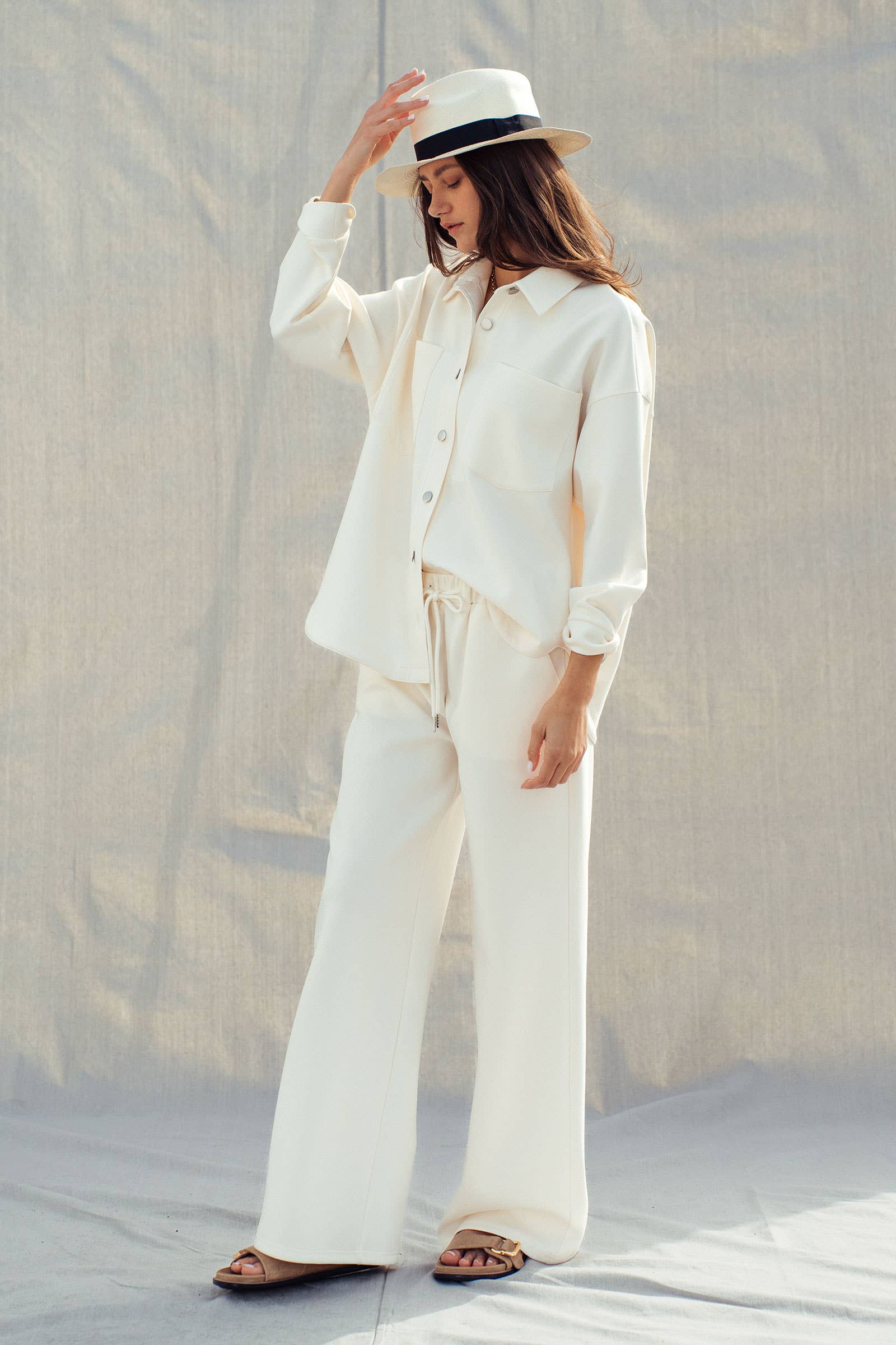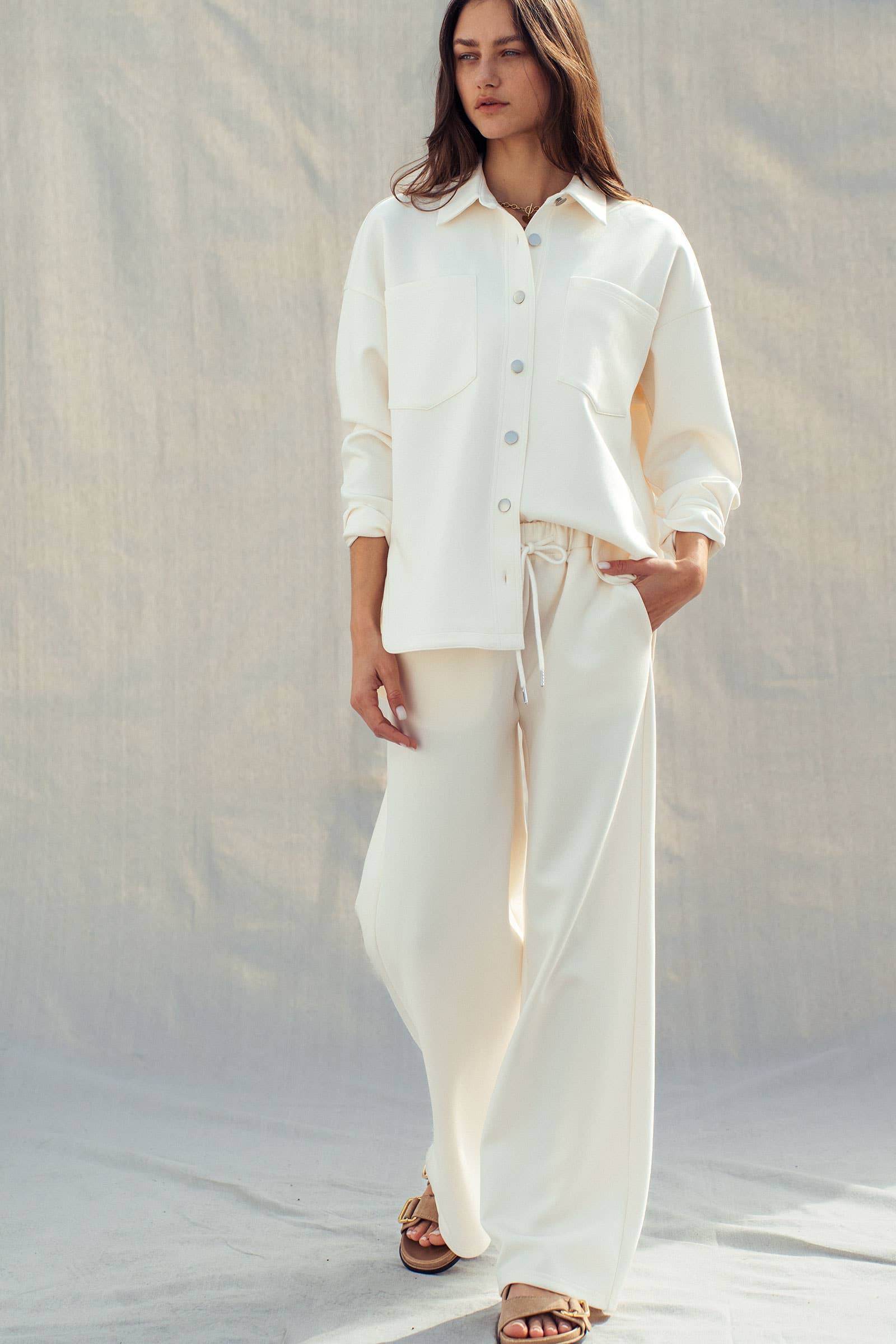 Master the "Quiet Luxury" trend with this structured knit shirt jacket. Designed to be worn as a polished top or a lightweight layer, it features silver-tone snap buttons and a relaxed, architectural fit.