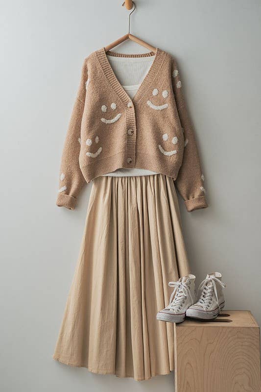 This comfortable and versatile midi skirt features a soft cotton blend, convenient side pockets, and a flattering elastic waistband. The thin circular design creates a flowing silhouette, perfect for everyday wear.
