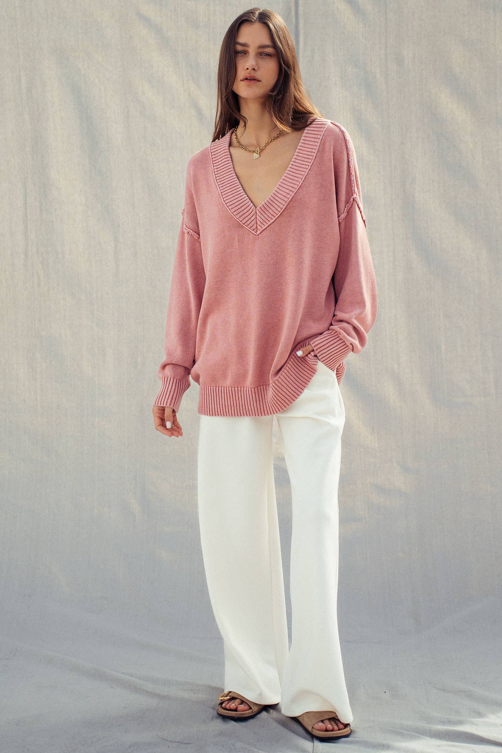 Styling Tips: Keep it monochrome with a white tank and an open shirt, or add a pop of color with a bright knit sweater (as shown) for a cozy weekend look.