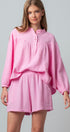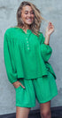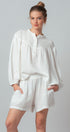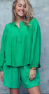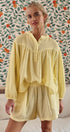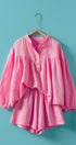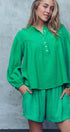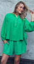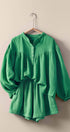 Garment Dyed Cotton Gauze Button Down Top And Shorts Set