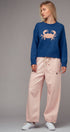 - Navy crab motif at chest