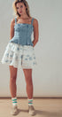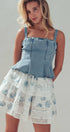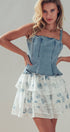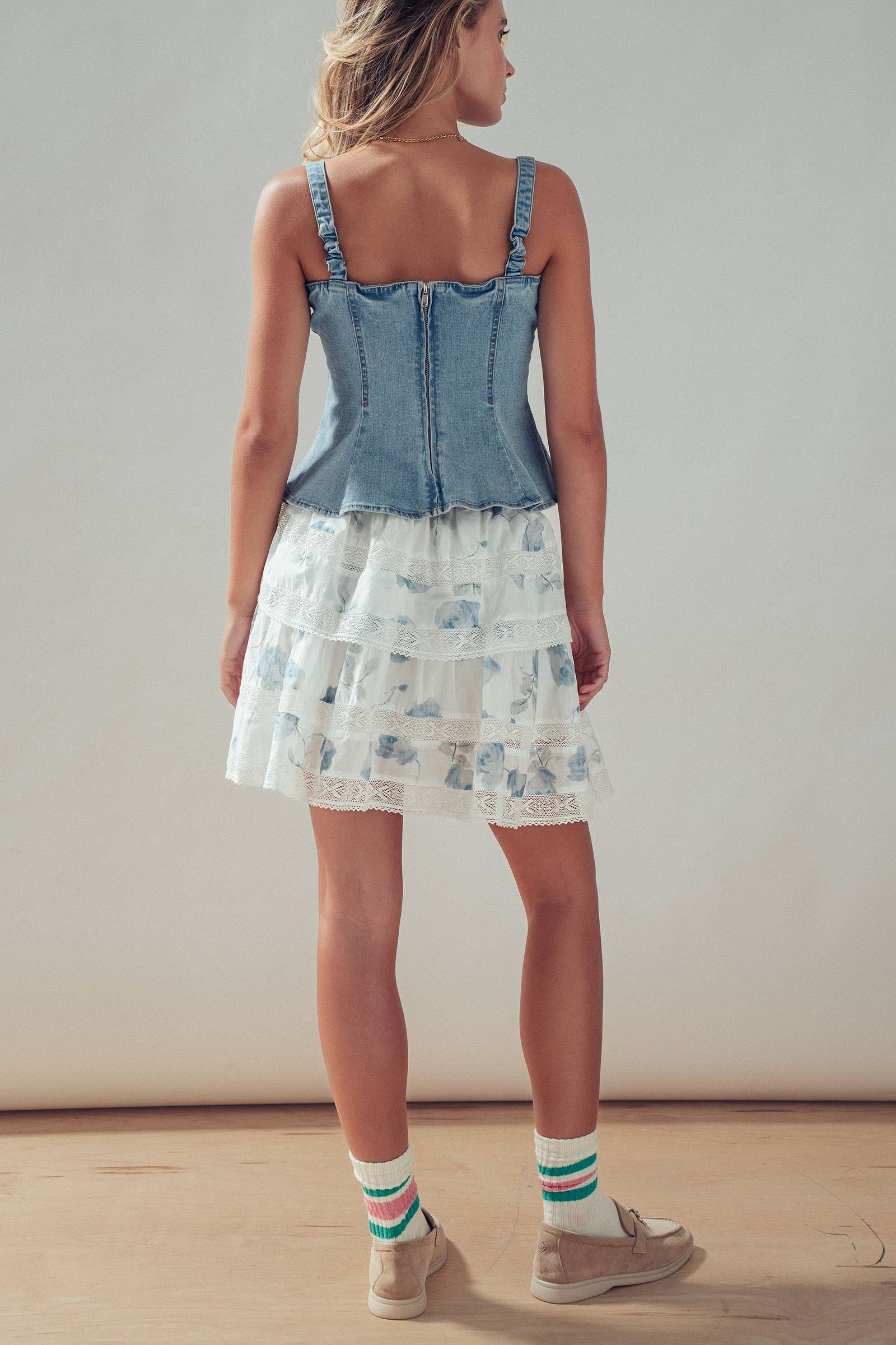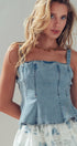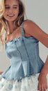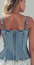 Elevate your denim collection with this structured bustier top. Featuring a corset-inspired bodice with vertical seaming and a flattering peplum hem, the sleeveless silhouette offers a chic, feminine update to classic denim styling.