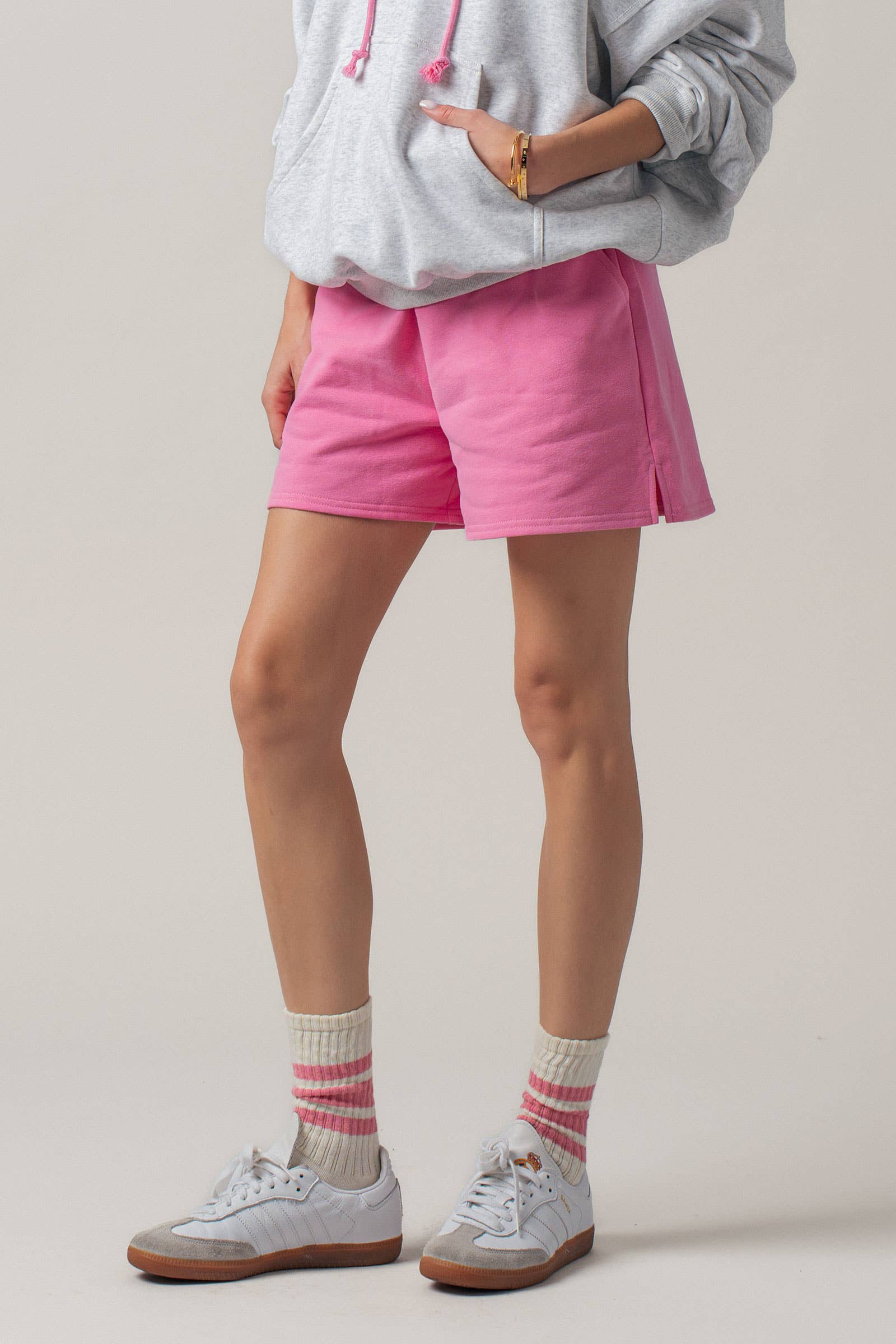Complete the ultimate athleisure uniform with these ultra-soft sweat shorts. Designed with a wide, comfortable waistband and sporty side slits, these bottoms are perfect for matching with our zip-up hoodies or styling solo for a casual summer look.