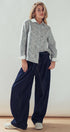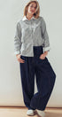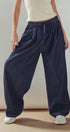 Update your casual wardrobe with these directional barrel-leg jeans, crafted from a sturdy dark wash cotton blend. The relaxed, balloon silhouette is defined by unique curved front seams, while the elastic waistband with an adjustable drawstring ensures a comfortable, flexible fit.