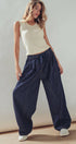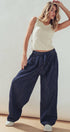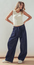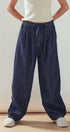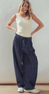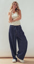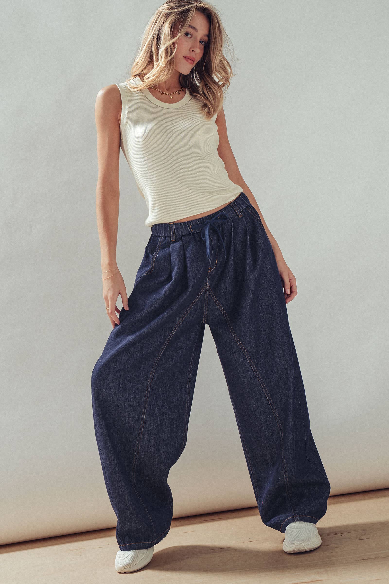 Drawstring Waist Dark Wash Barrel Leg Jeans