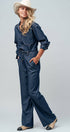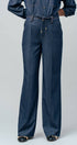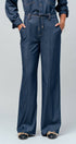 Update your denim rotation with these sophisticated wide-leg pants. Crafted in a rich dark wash, the design features a comfortable drawstring waist and distinctive front seam detailing, offering a polished yet relaxed aesthetic suitable for all-day wear.