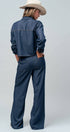 Drawstring Wide Leg Denim Pants