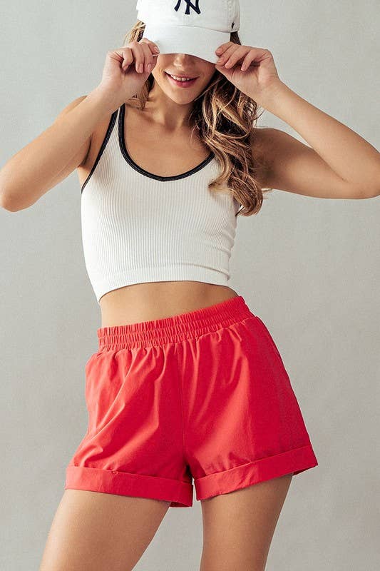 Elastic Waist Rolled Hem Casual Shorts