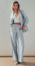 These breezy trousers feature a relaxed wide-leg silhouette and a comfortable elastic waistband, offering a sophisticated alternative to everyday jeans. Whether styled with the matching blazer for a monochromatic look or a casual tank, they fit effortlessly into a modern western apparel wardrobe.