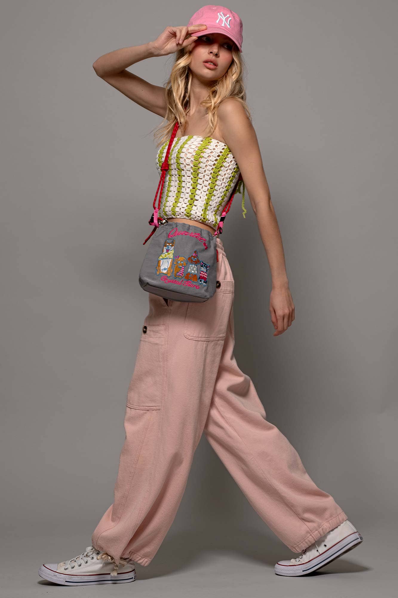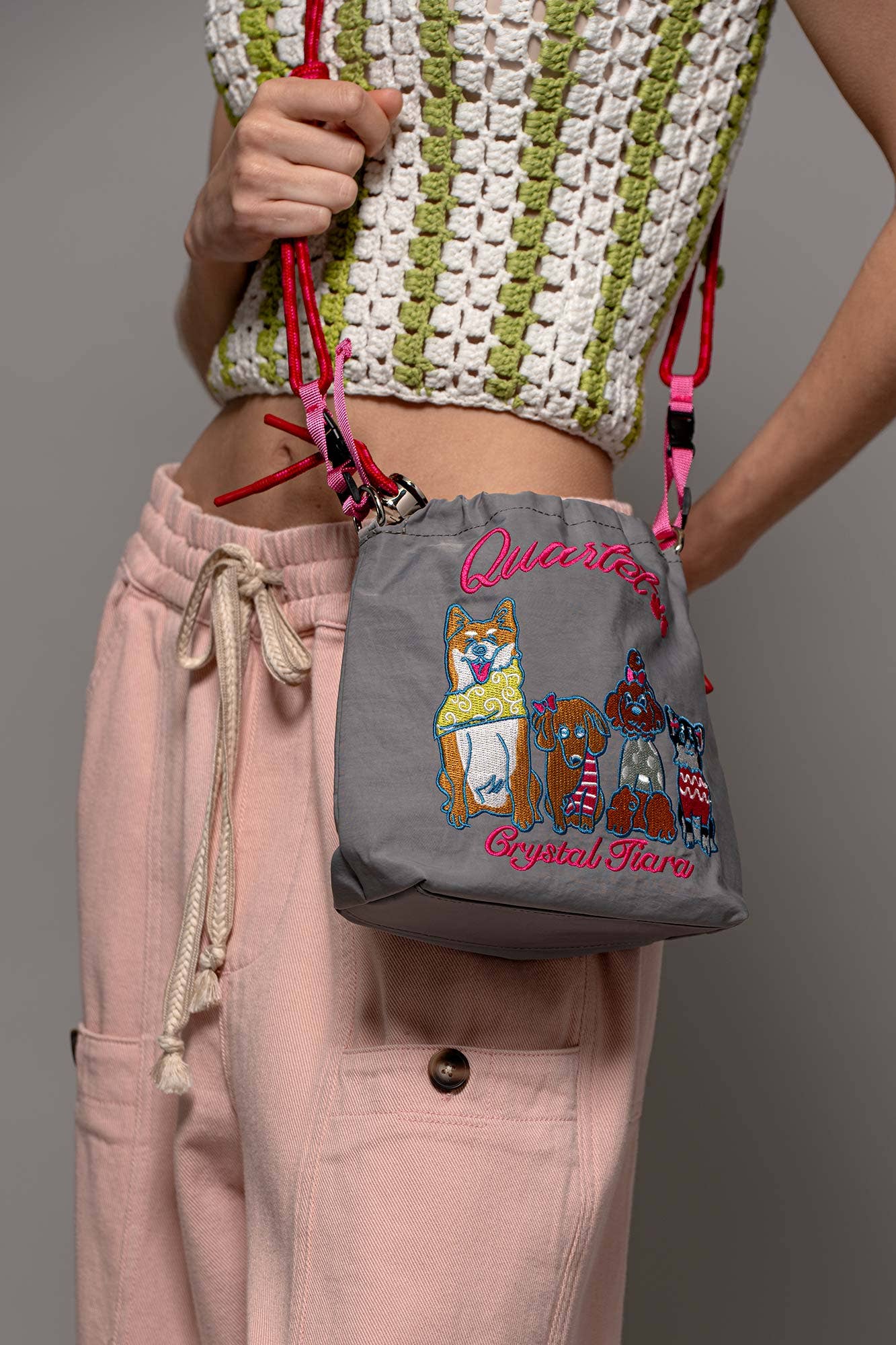 Embroidered Band Character Drawstring Crossbody