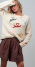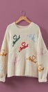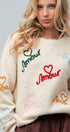 A playful twist on a cozy classic, this sweater blends soft texture with romantic charm. Crafted from a fluffy knit, it’s scattered with colorful Amour embroidery, each accented by a sweet heart detail for a joyful, statement-making touch. The relaxed fit and simple crew neckline make it effortlessly versatile, while ribbed edges add a polished finish. Perfect for pairing with denim or skirts when you want comfort with a hint of whimsy.