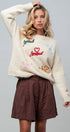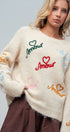 - Fluffy knit with colorful Amour embroidery + heart details