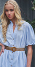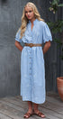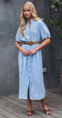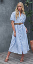 Embroidered Linen Blend Button Front Midi Dress