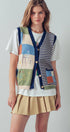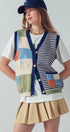 Embroidered Patchwork Striped Knit Vest