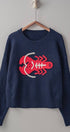 This cozy crewneck sweater features a bold embroidered lobster motif in vibrant red. Crafted from a premium poly-blend fabric with ribbed trim details and relaxed fit. Ideal for seasonal celebrations and everyday wear.