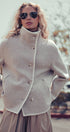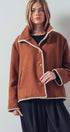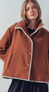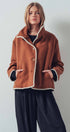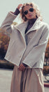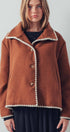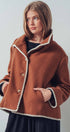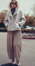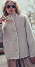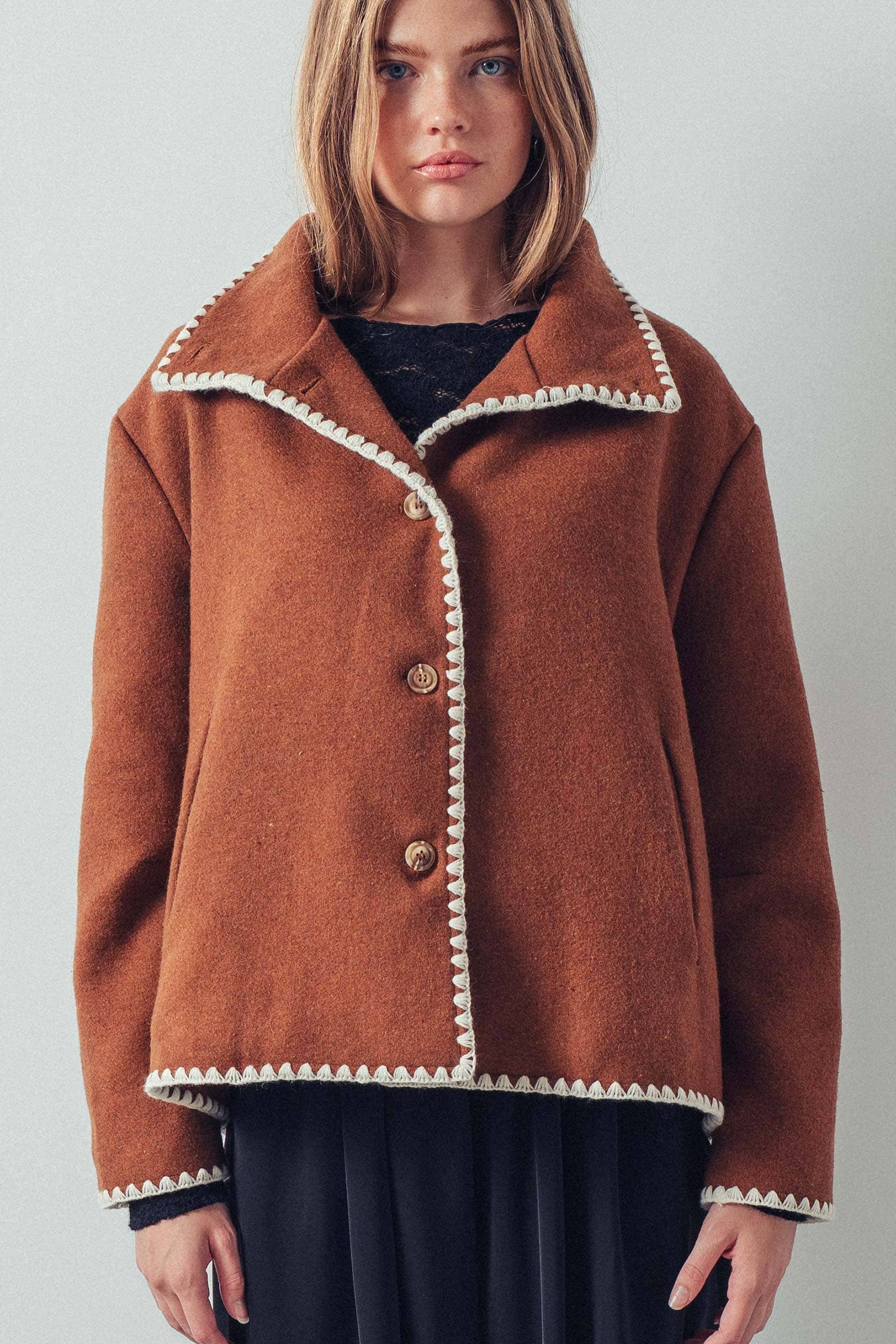 A refined and versatile layering piece, this jacket is crafted from a warm and structured wool-blend. It features a clean stand collar and is accented with contrast embroidered trim for a touch of subtle, artisanal detail. The relaxed, boxy silhouette offers a modern look that is both polished and effortless.
