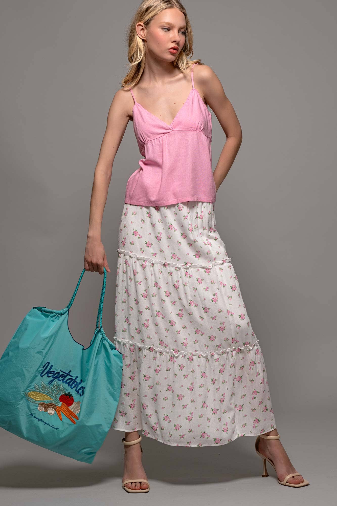 This charming oversized tote features playful vegetable embroidery, perfect for farmers' market trips or everyday use. The braided handles and drawstring closure combine functionality with a whimsical design.