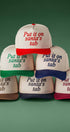 100% Cotton One Size (1PK:6PC) Holiday-themed script embroidery Structured mid-profile crown with curved brim Adjustable snapback closure Made in China