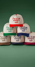 Bring holiday humor to your look with this playful two-tone trucker hat, featuring whimsical script embroidery and a structured crown. Perfect for adding seasonal cheer to casual outfits, gifting moments, or festive outdoor adventures.