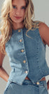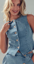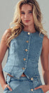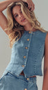 Fitted Gold Button Front Denim Vest