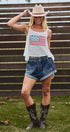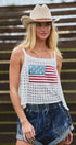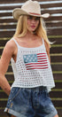 Achieve a bold, graphic look with this breezy open-knit tank top. The relaxed, trapeze silhouette is accented by a vibrant red, white, and blue flag motif knitted into the chest. The lightweight, airy construction makes this an ideal layering piece.