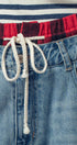 A unique twist on a wardrobe staple, these denim pants combine timeless style with a cozy, unexpected detail. Crafted from a soft cotton-lyocell blend, they feature a comfortable straight-leg silhouette and a contrasting checked flannel waistband, complete with an adjustable drawstring for a perfect fit.