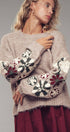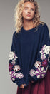 Floral Embroidered Sleeve Knit Sweater