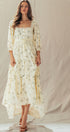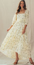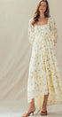 Floral Print Crochet Trim Balloon Sleeve Maxi Dress
