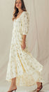 Fit: A flowy, A-line maxi silhouette with a cinched, elasticated waist and voluminous balloon sleeves.