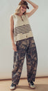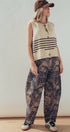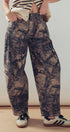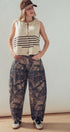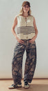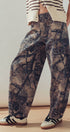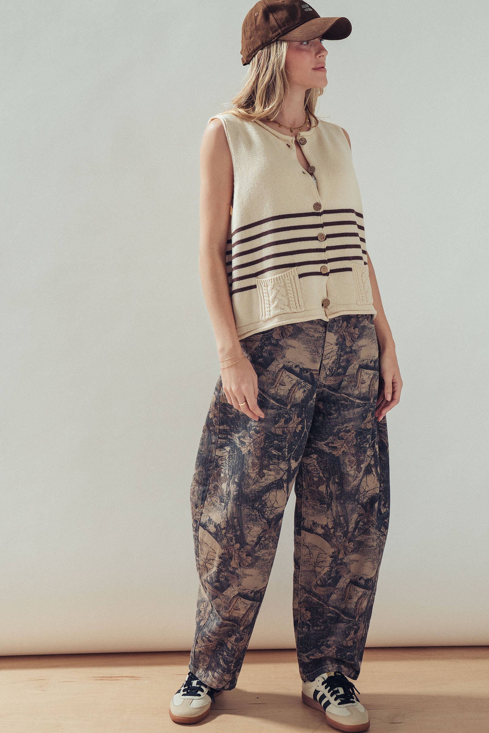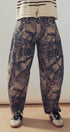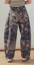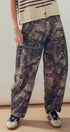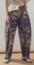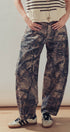 Make a bold statement with these forest camouflage print jeans, designed for a standout streetwear aesthetic. Crafted from sturdy 100% cotton denim, they feature a trendy barrel-leg silhouette that offers a voluminous, relaxed fit through the leg before tapering slightly at the ankle.