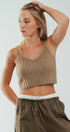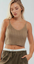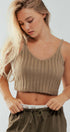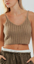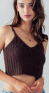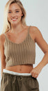 Fuzzy Rib Knit Cropped V Neck Summer Tank Top