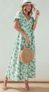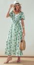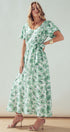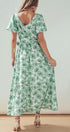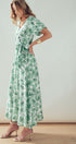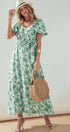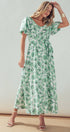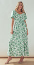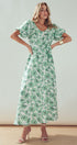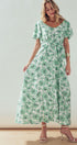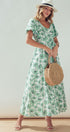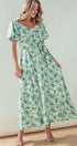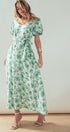 Green Floral Puff Sleeve Midi Dress