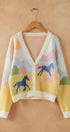 Landscape Horse Jacquard Knit Cardigan