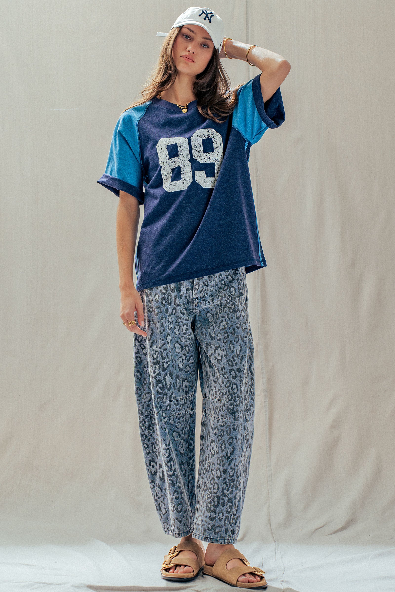Make a bold statement in these relaxed-fit denim pants featuring a trendy camo-inspired leopard print. Designed in a soft cotton blend with a straight-leg silhouette and mid-rise waist—perfect for pairing with cropped tops or denim vests.